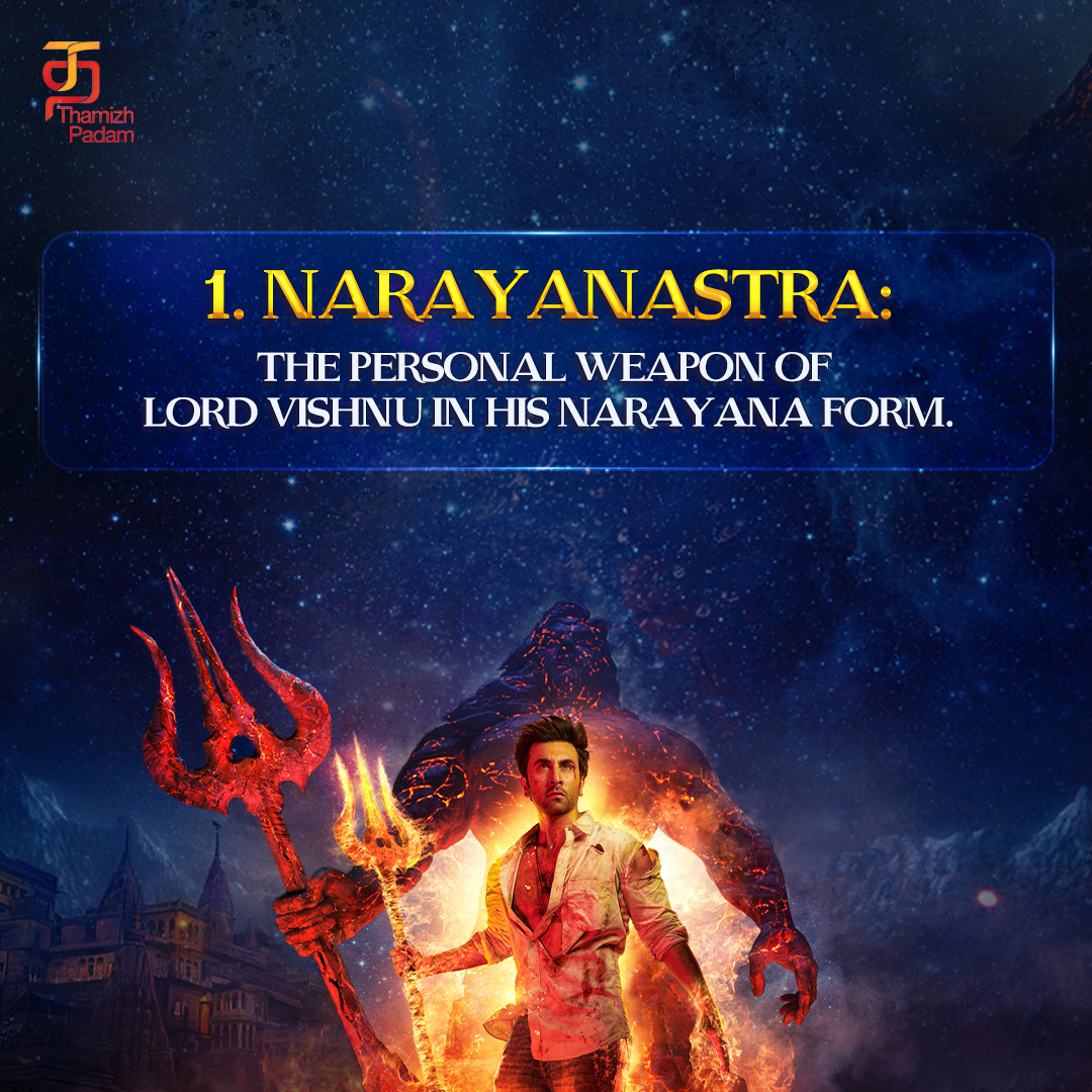 1. நாராயணாஸ்திரம்: விஷ்ணுவின் தனிப்பட்ட ஆயுதம் அவரது நாராயண வடிவில்.